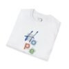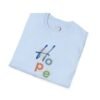 This shirt has a unique design and color palette and says one word, “Hope.” With the scripture reference (Romans 5:3-5), the focal point is our hope in the Lord that will carry us through any situation. We do not have to allow the things around us to decrease our hope. We have a God who loves us and has given us His Spirit to overcome.