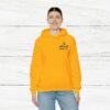 This unisex heavy blend hooded sweatshirt is relaxation itself. Made with a thick blend of cotton and polyester, it feels plush, soft and warm, a perfect choice for any cold day. In the front, the spacious kangaroo pocket adds daily practicality while the hood’s drawstring is the same color as the base sweater for extra style points.