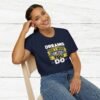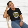 The unisex soft-style t-shirt puts a new spin on casual comfort. Made from very soft materials, this tee is 100% cotton for solid colors. Heather colors and sports grey include polyester. The shoulders have twill tape for improved durability. There are no side seams. The collar is made with ribbed knitting to prevent curling damage.