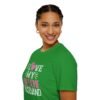 What a great way to show your love for your husband on Valentine’s Day. Doing something for him while wearing this shirt or going out together. *Check out our design for the husbands to wear as well.