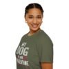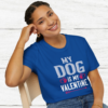 Well, for some single people, their dog will be their Valentine. We love our dogs, and they become family. This design was inspired by those who only have their dogs and no one else on Valentine’s Day.