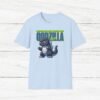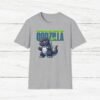 A fun and vibrant t-shirt featuring a design of Godzilla with bright colors. Perfect for those who enjoy quirky and unique graphic tees. Ideal for fans of Godzilla movies or anyone looking to add a playful touch to their wardrobe. Great for casual wear and can be worn all year round. Suitable for adults and makes a great gift for Godzilla enthusiasts on birthdays or as a special surprise.
