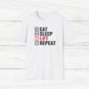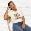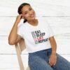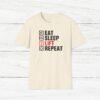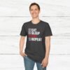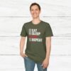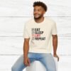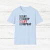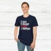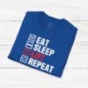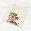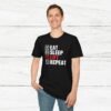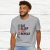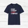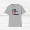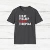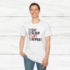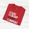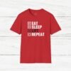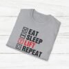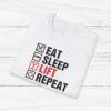 Elevate your gym wardrobe with this ‘Eat Sleep Lift Repeat’ fitness t-shirt design, perfect for gym enthusiasts. Made from 100% ring-spun cotton, this lightweight and versatile t-shirt will keep you comfortable all year round. Ideal for adults and suitable for various occasions, this t-shirt features a classic fit with a crew neckline for a clean and stylish look.