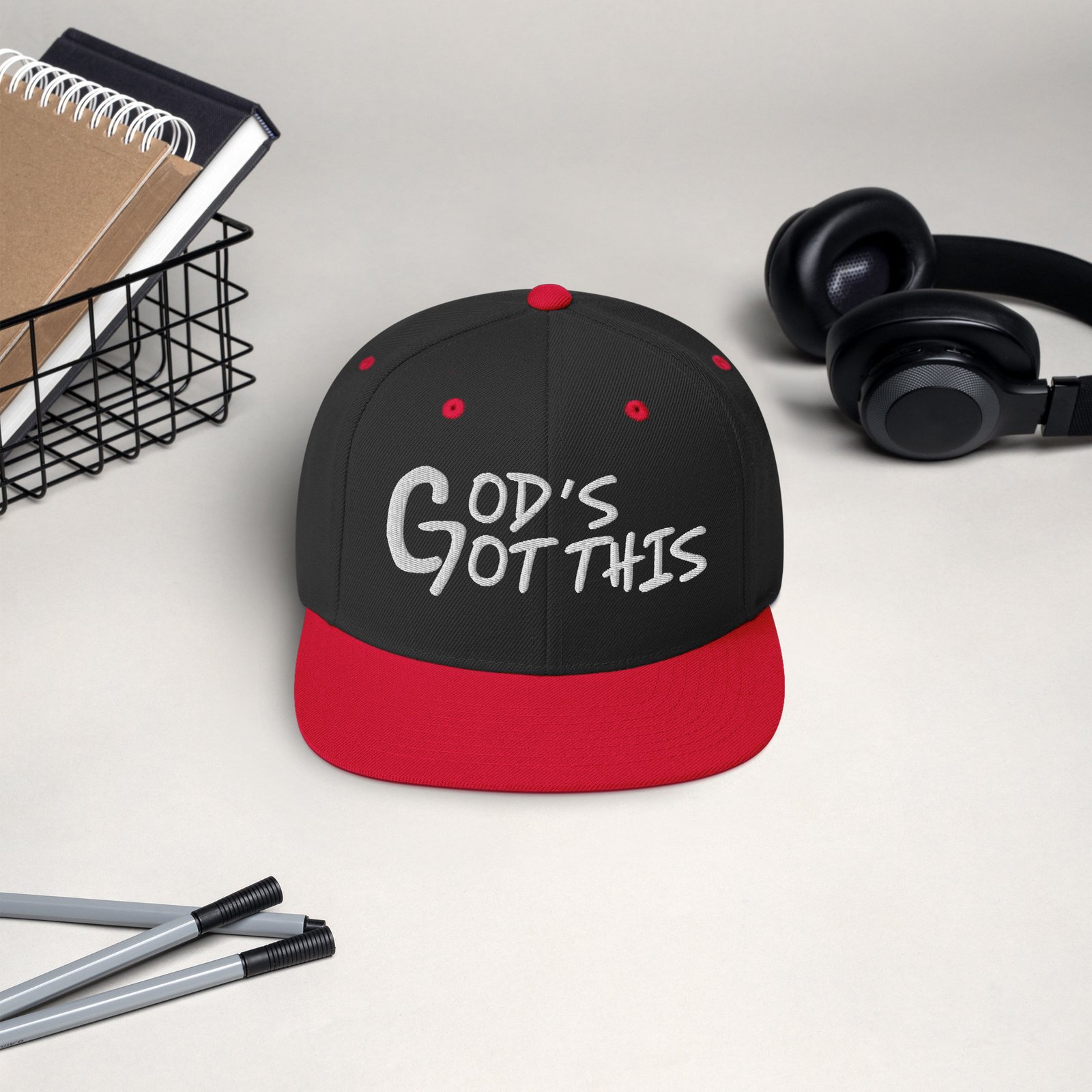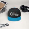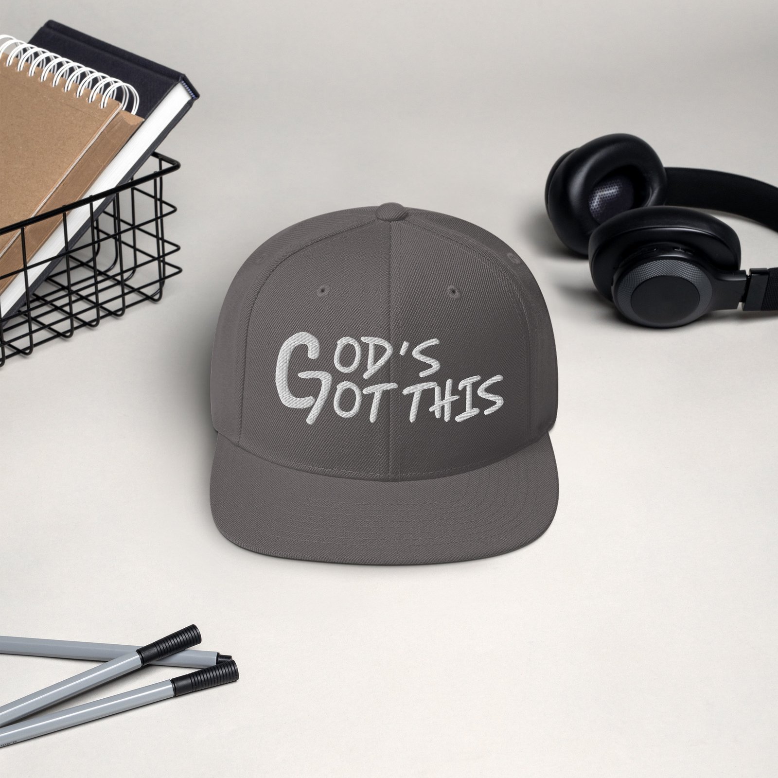 This hat is structured with a classic fit, flat brim, and full buckram. The adjustable snap closure makes it a comfortable, one-size-fits-most hat. Plus, it is a great reminder that no matter what is going on in the world, for those who believe, we know God’s got this!