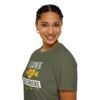 The unisex soft-style t-shirt puts a new spin on casual comfort. Made from very soft materials, this tee is 100% cotton for solid colors. Heather colors and sports grey include polyester. The shoulders have twill tape for improved durability. There are no side seams. The collar is made with ribbed knitting to prevent curling damage.