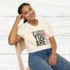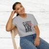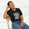 The ‘In Christ You Are Enough’ Unisex T-Shirt design with a heart exudes a message of faith and self-worth. God values you more than you know! If you want to know how much you are valued do not look at your circumstances look at the cross. This softstyle tee is perfect for those who want to spread positivity and love in their everyday wear. Ideal for adults, this tee is made from durable and smooth fabric. Suitable for various occasions, this tee offers a classic fit with a crew neckline for versatile styling options.