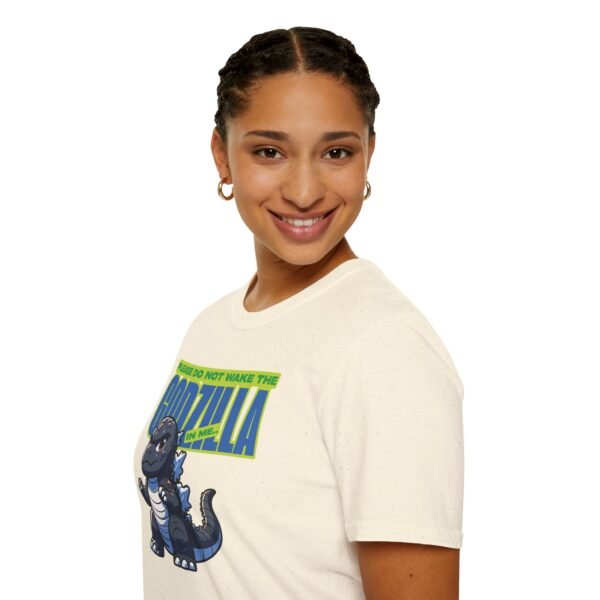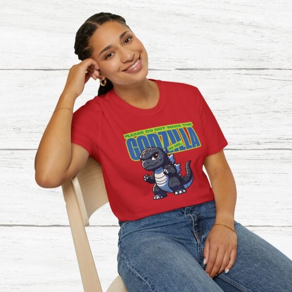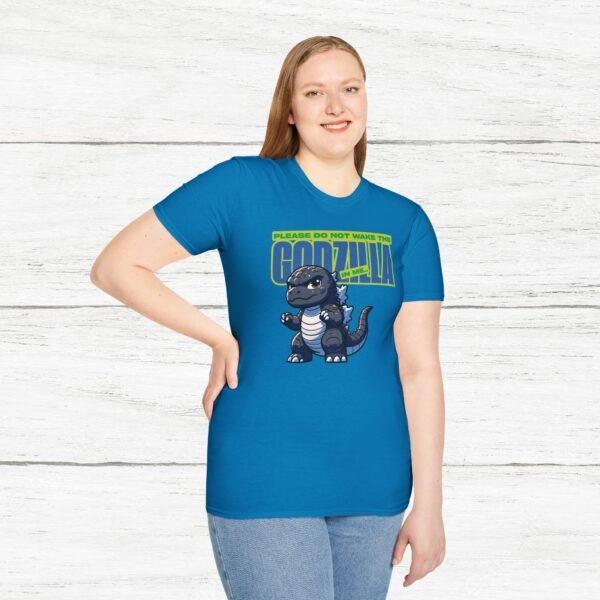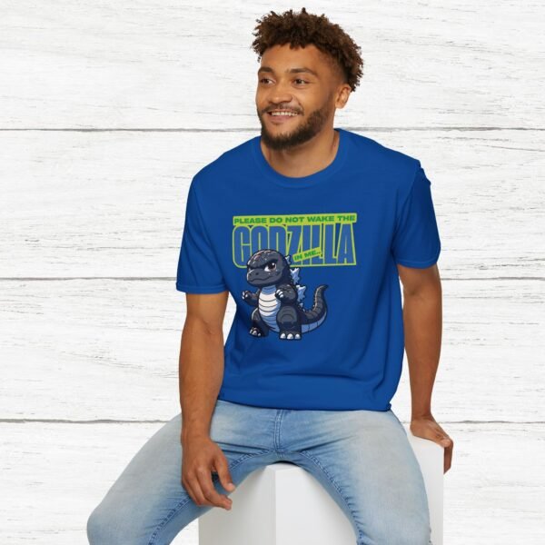 A fun and vibrant t-shirt featuring a design of Godzilla with bright colors. Perfect for those who enjoy quirky and unique graphic tees. Ideal for fans of Godzilla movies or anyone looking to add a playful touch to their wardrobe. Great for casual wear and can be worn all year round. Suitable for adults and makes a great gift for Godzilla enthusiasts on birthdays or as a special surprise.