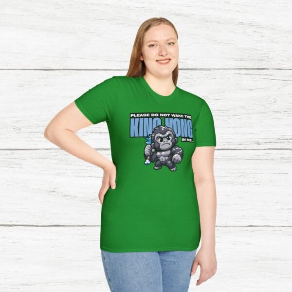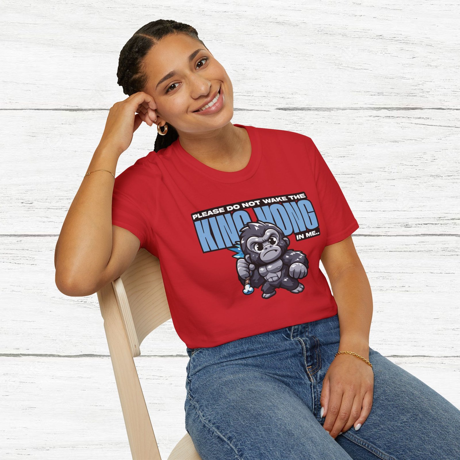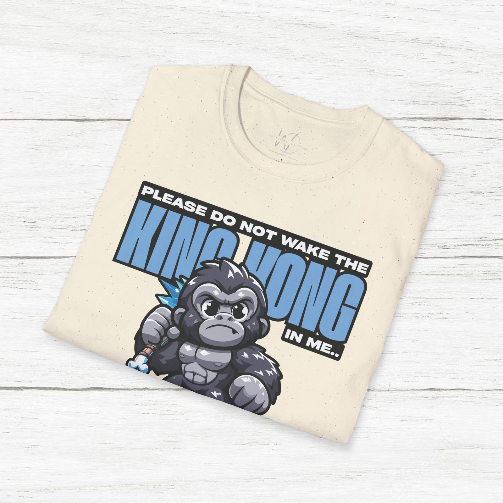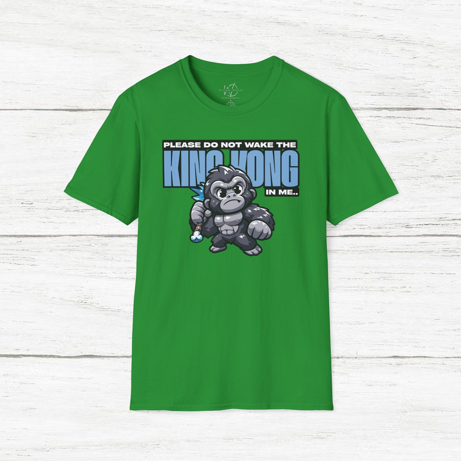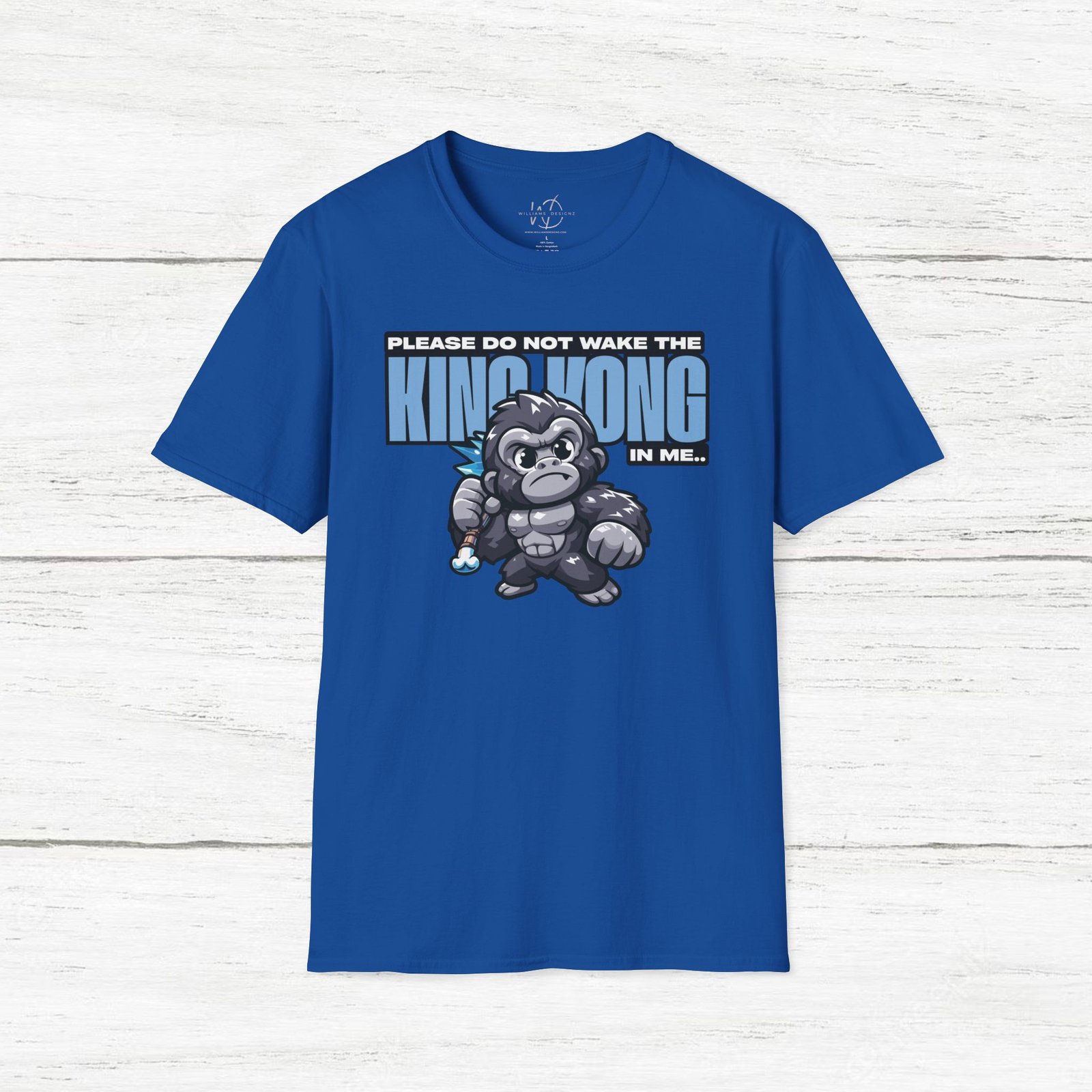 A fun and vibrant t-shirt featuring a design of King Kong with his axe. Perfect for those who enjoy quirky and unique graphic tees. Ideal for fans of King Kong movies or anyone looking to add a playful touch to their wardrobe. Great for casual wear and can be worn all year round. Suitable for adults and makes a great gift for King Kong enthusiasts on birthdays or as a special surprise.